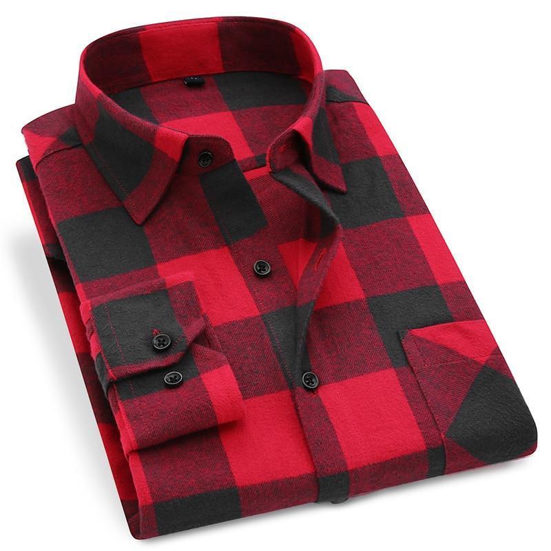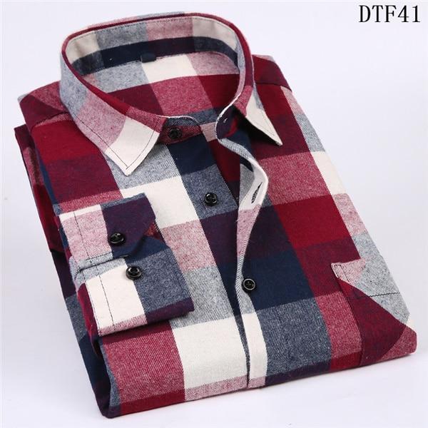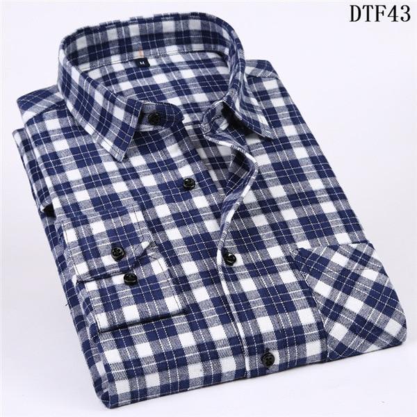 Men Flannel Plaid Shirt 100% Cotton Spring Autumn Casua