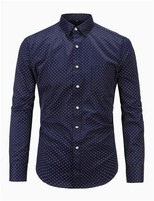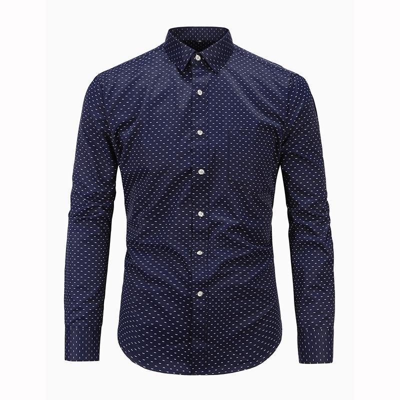 Spring New Men's Cotton Print Slim Fit Long Sleeve